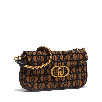 Borsa Donna a Spalla LIU JO in Tessuto Jacquard Marrone con Logo All Over
