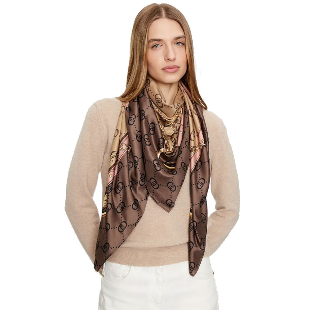 Foulard Donna 120 x 120 cm LIU JO con Logo Monogram Mocha
