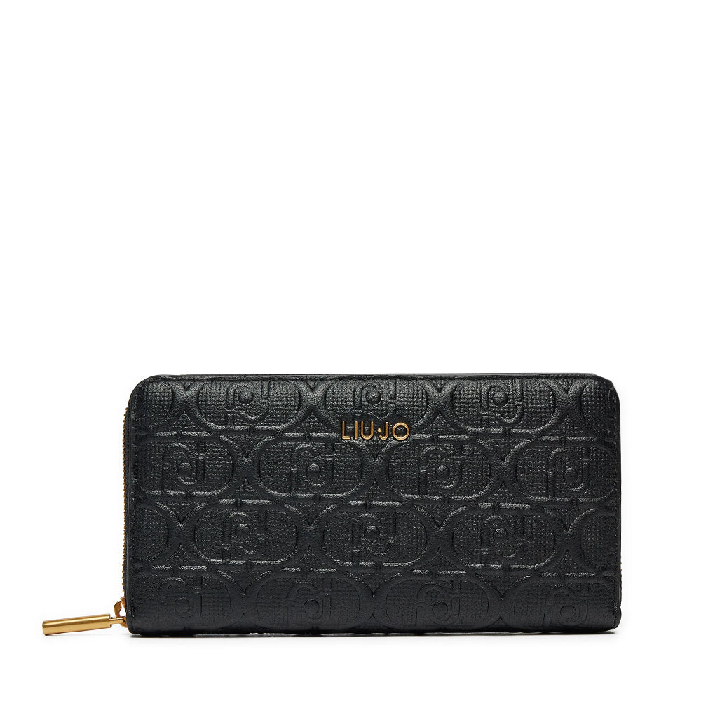 Portafoglio Donna Zip Around LIU JO Better Nero con Logo Monogram All Over