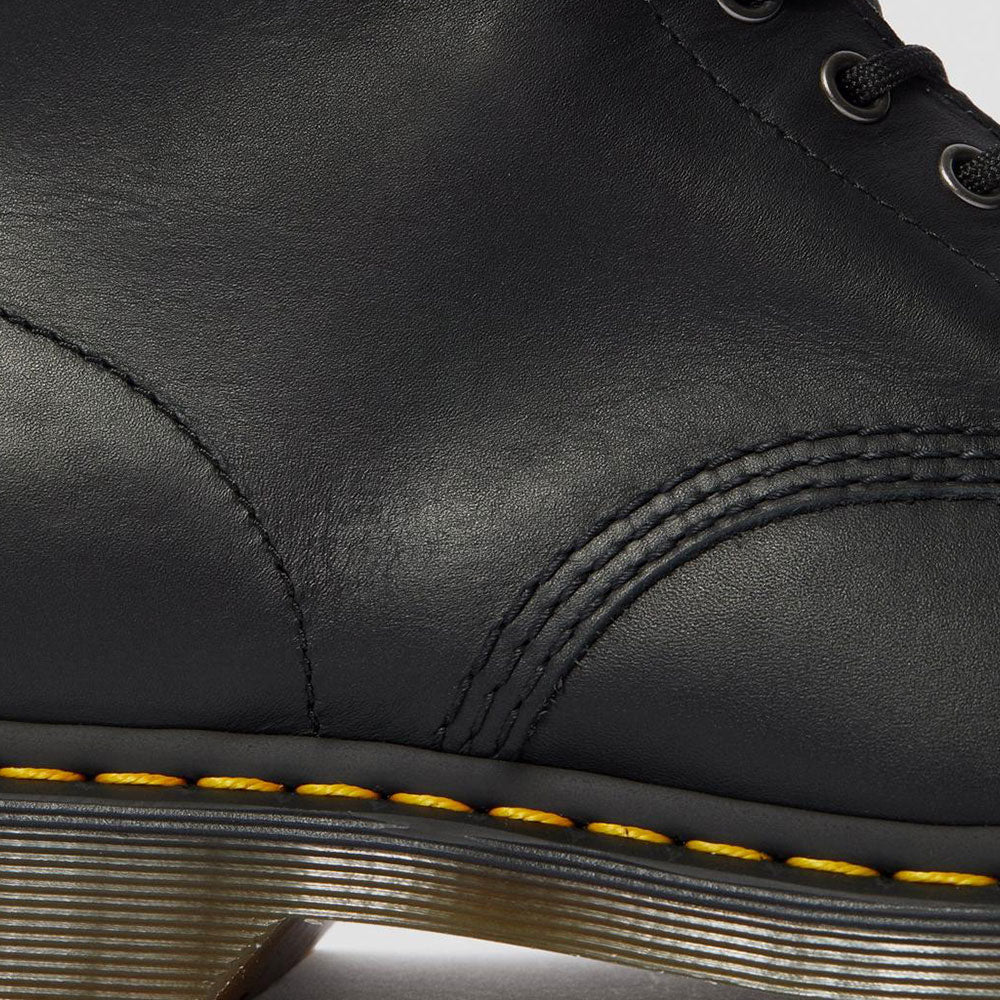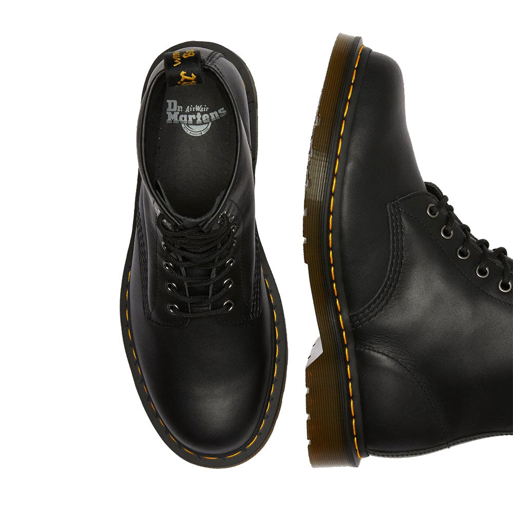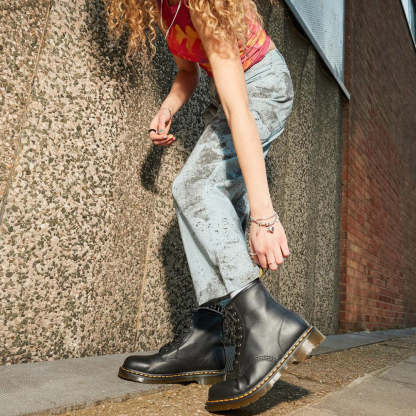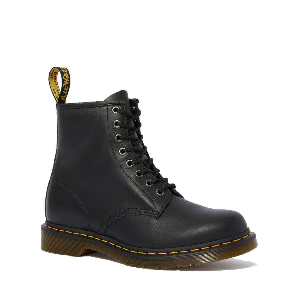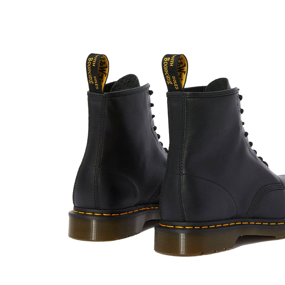 1460 è l’originale stivale Dr. Martens. Il suo DNA immediatamente riconoscibile presenta 8 occhielli, realizzino in pelle Dr. Martens Nappa, bordi scanalati, una fettuccia posteriore con logo, cuciture gialle e una confortevole suola a cuscinetto.