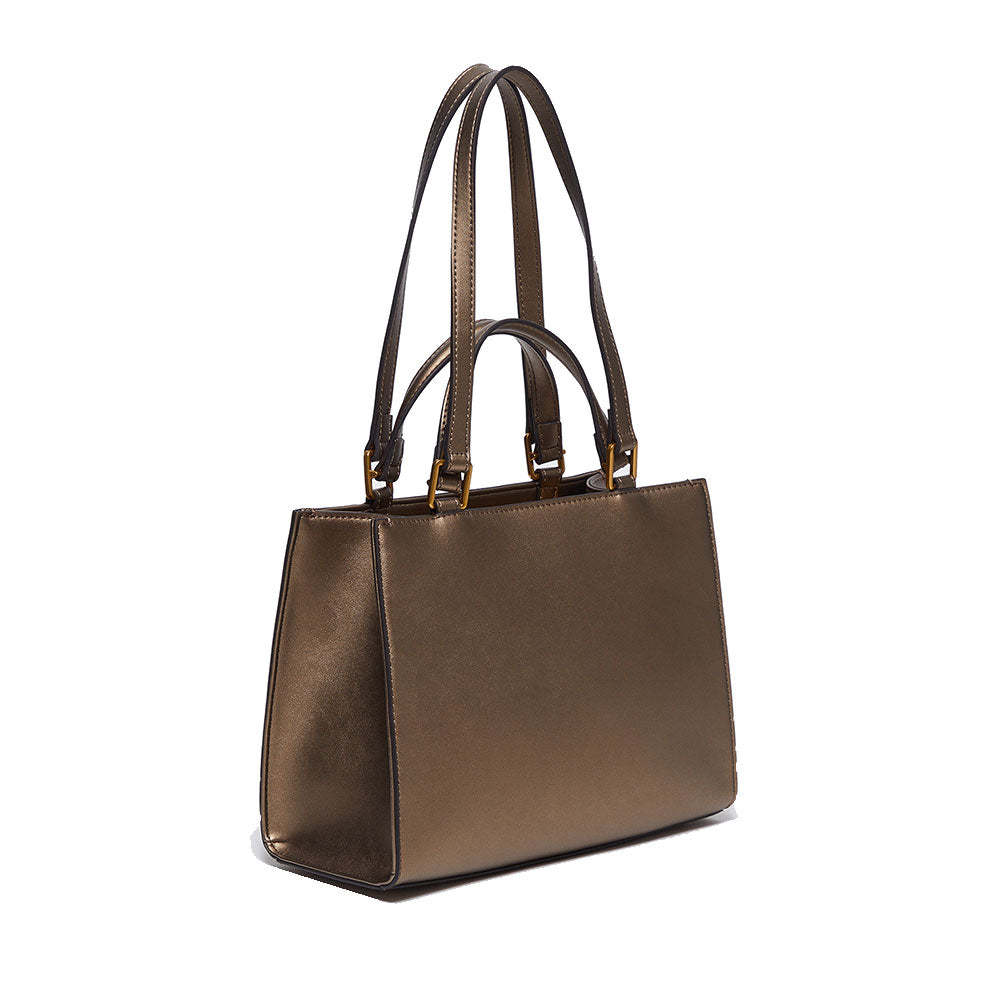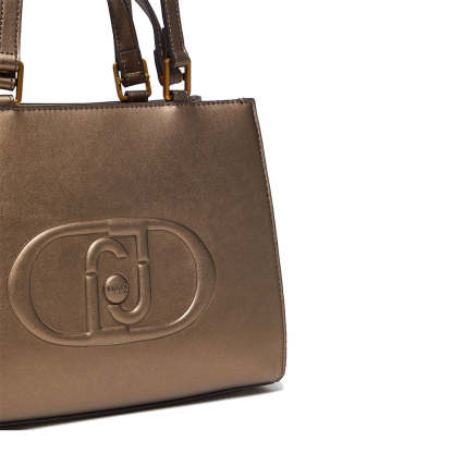 Shopping Bag a Mano e a Spalla LIU JO Better Metallizzato Bronzo con Maxi Logo in Rilievo