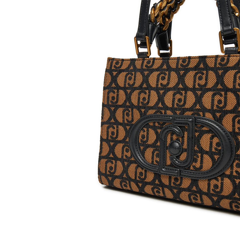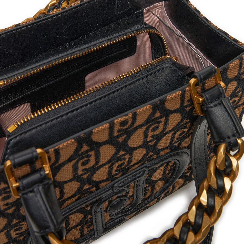 Shopping Bag a Mano e a Spalla LIU JO in Tessuto Jacquard Nero con Logo All Over