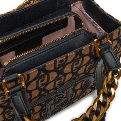 Borsa doppia portabilità. in tessuto jacquard con logo all over con inserti in ecopelle, chiusa con zip. Logo in rilievo sul davanti. Doppi manici.