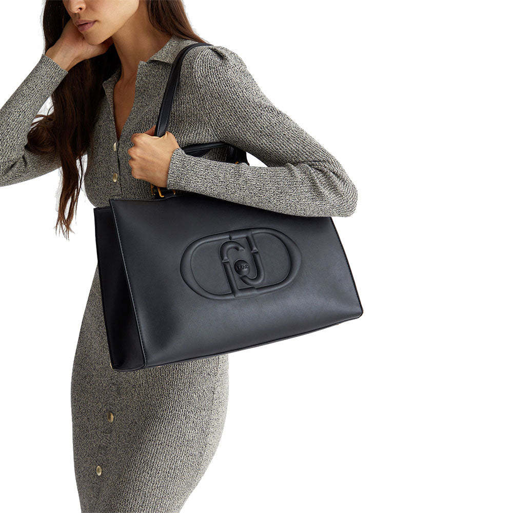 Shopping Bag Large a Mano e a Spalla LIU JO Better Nero con Maxi Logo in Rilievo