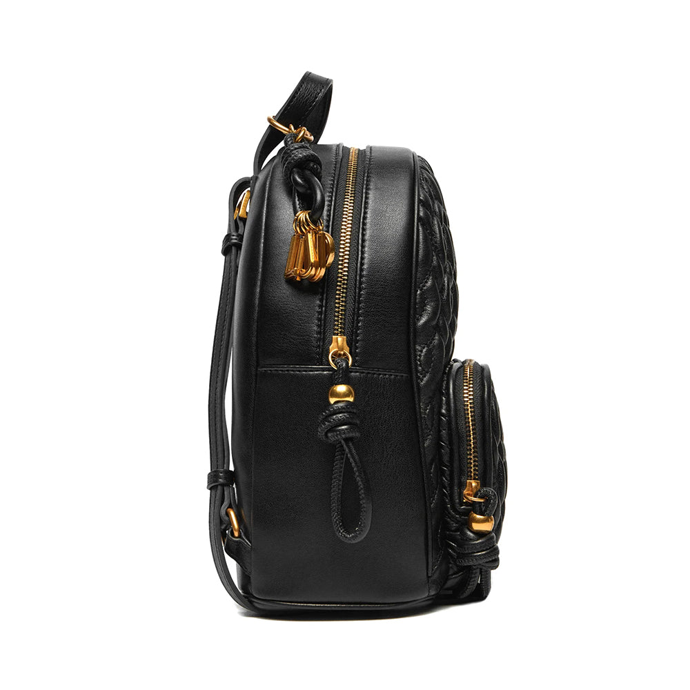 Zaino in ecopelle con lavorazione matelassé a treccia, chiusa con zip. Spallacci regolabili. Charm con logo in metallo. Prodotto "Liu Jo Better".